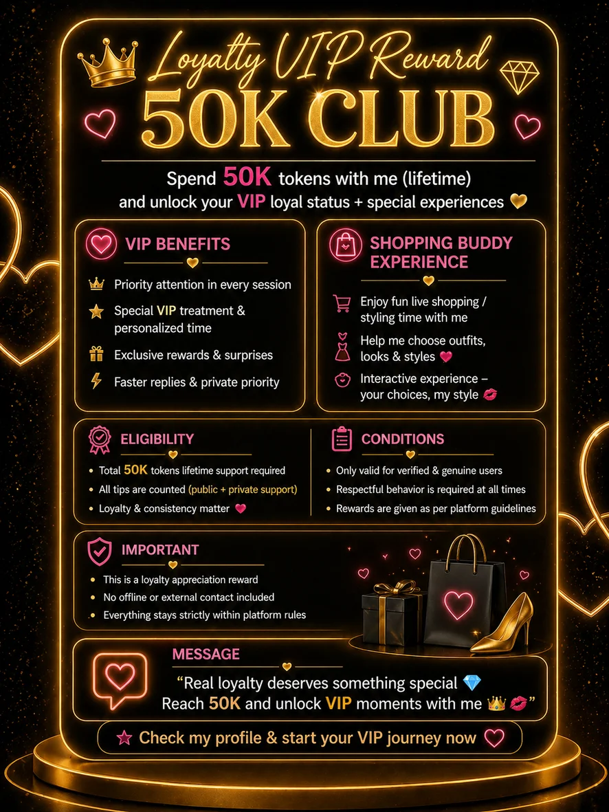 spend 50k tokens with me (lifetime) and unlock your vip loyal status + special experiences 💎